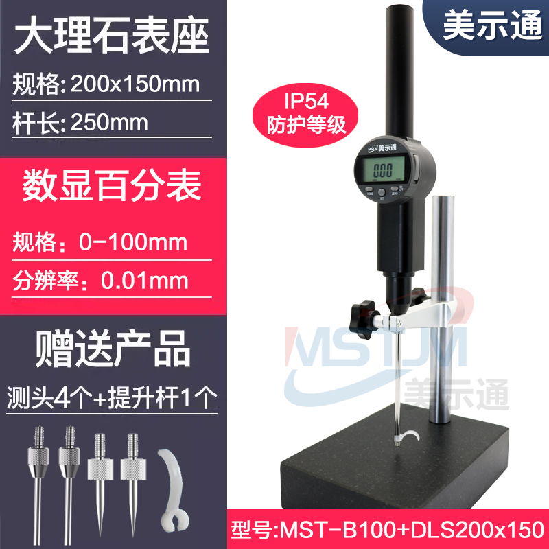 美示通数显百分表0-100mm+大理石200X150mm 送四个测针,1个提升杆