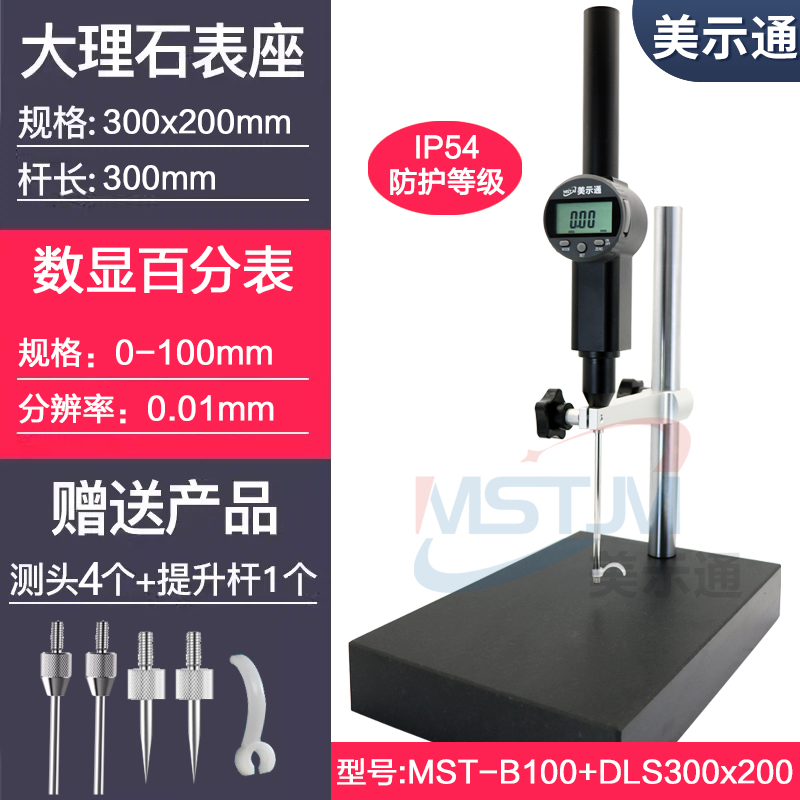 美示通数显百分表0-100mm+大理石300X200mm 送四个测针,1个提升杆