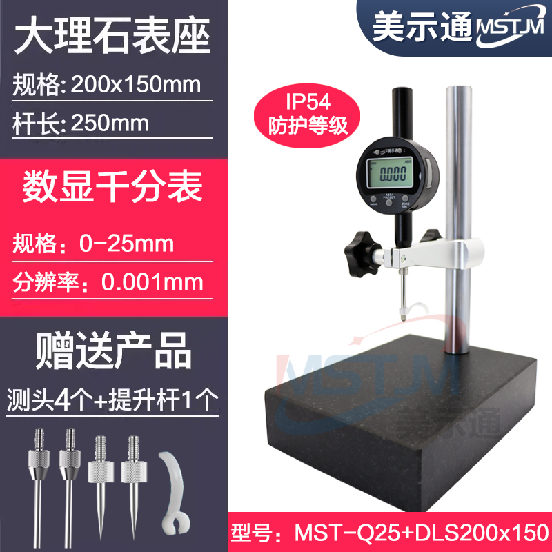 美示通数显千分表0-25.4mm+大理石200X150mm 送四个测针,1个提升杆