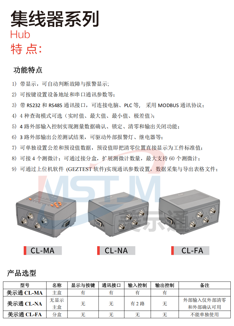 美示通485绝对值测微计主要功能: 1、高精度位移测量,绝对原点技术2、可与 PLC 、上位机软件、触摸屏等通讯,协议为Modbus RTU3、可软件设置站号地址和串口通讯参数等技术指标:1、接口形式:RS485接口2、通讯协议:MODBUS RTU3、工作电压范围:DC5V~24V4、从站可调范围:1-2475、波特率可调范围:9600-1152006、工作电流:<10mA7、数据更新速度:默认8ms(125次/S),最快可设4ms(250次/S)8、使用寿命:反复测量500万次9、检测系统:容栅测量系统,玻璃材料传感器引线定义: 棕(5V~24V) 蓝(A+) 白 (B-) 黑(GND)