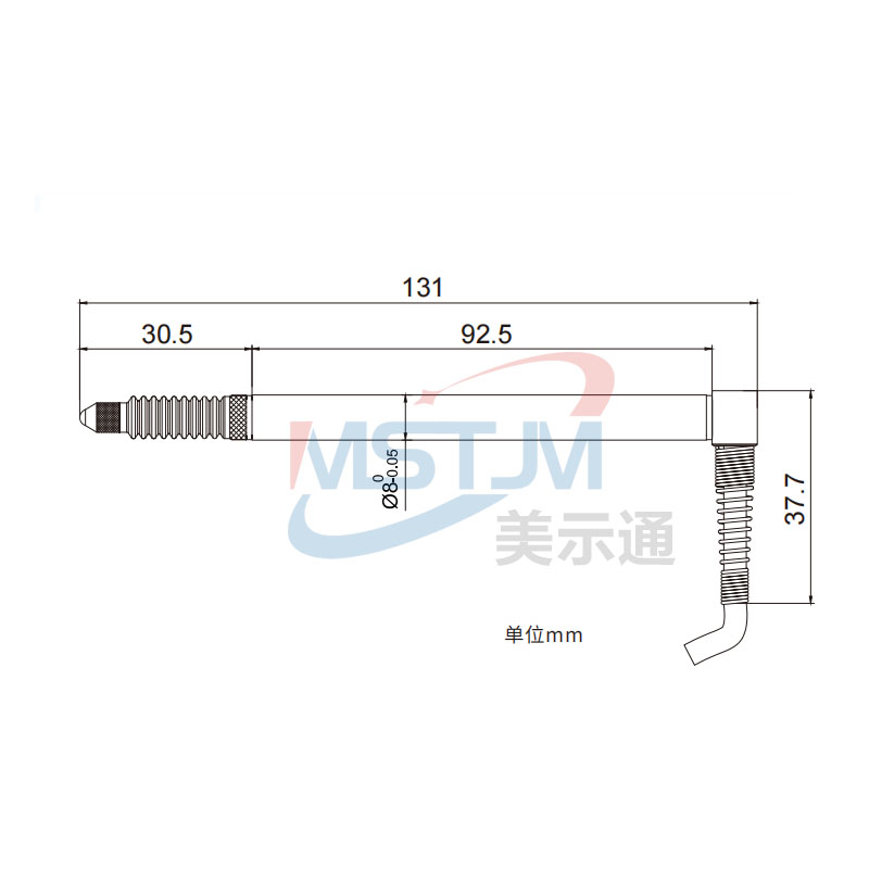 10mm侧出线回弹式传感器,可用于如位移、振动、内径、外径、垂直度、圆度、直线度等形位公差的测量,按出线方向可以分为直出线式和侧出线式,是快速测量微小尺寸变化的高精度传感器。