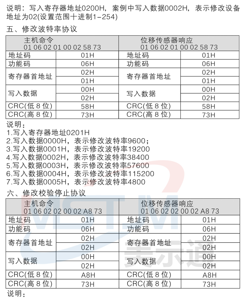 数据帧格式:MODBUSRTU模式串口参数:默认波特率38400,1个起始位,8个数据位,无奇偶校验,2个停止位设备地址:默认01H