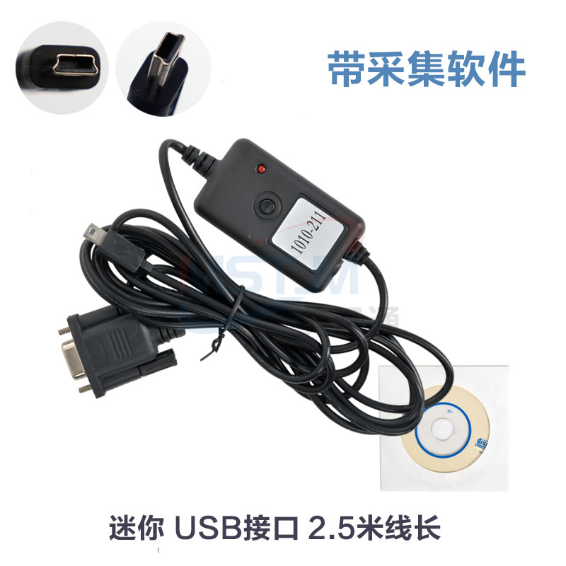 数据线1010-211连接电脑端R232数据口,连接软件手动或自动记录数据,线长2.5米,接表端mini USB接口。ASCII协议和0xAA协议可以自由切换。