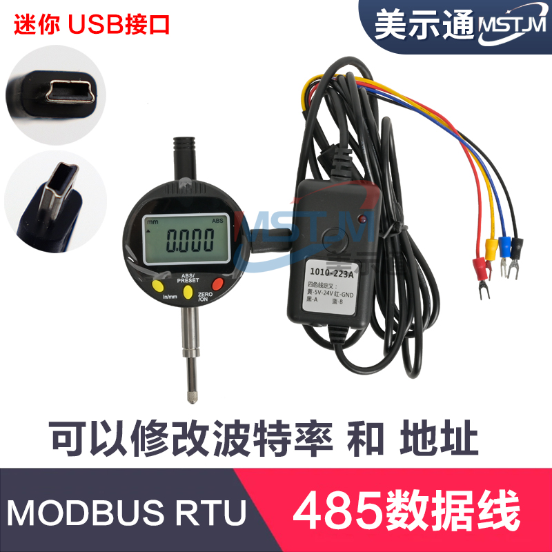 485数据线1010-223A接表端mini USB接口,另外一端四芯散线,线长2.5米。适用于数显量表与PLC 通讯,协议为 modbus RTU 模式,可接5V-24V 供电,可设置站号地址和串口通讯参数等。出厂默认通讯参数:38400,n,8,1 默认站号地址:01。