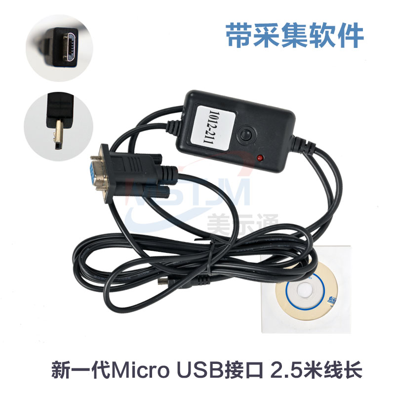 数据线1012-211连接电脑端R232数据口,连接软件手动或自动记录数据,线长2.5米,接表端Micro USB接口。ASCII协议和0xAA协议可以自由切换。