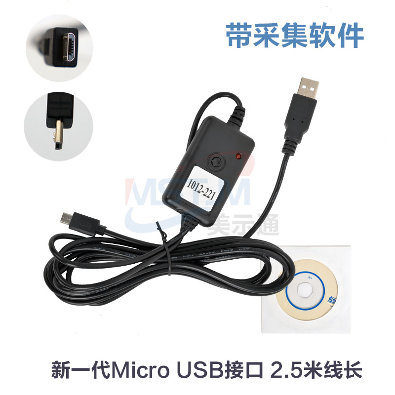 数据线1012-221连接电脑端USB数据口,连接软件手动或自动记录数据,线长2.5米,接表端Micro USB接口。ASCII协议和0xAA协议可以自由切换。