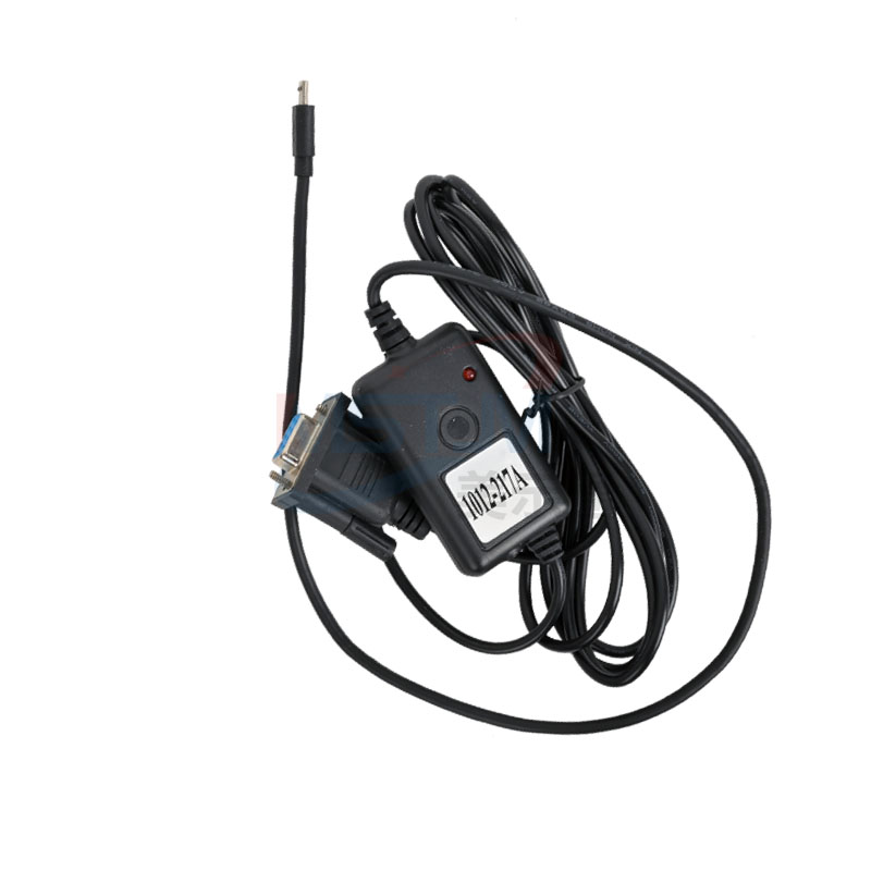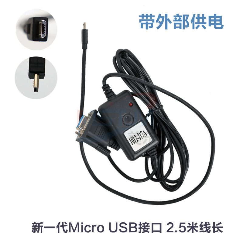 量表通过数据线1012-217A连接集线器或显示盒,接表端Micro USB接口,另外一端R232数据口,线长2.5米。数据线带外部供电功能,使用该数据线,量表不需要安装电池。1012-217 和1012-217A区别:1012-217是不给表供电,表电池供电 1012-217A是数据线给表供电,表不安装电池,供电的线拔掉后,表单独不显示数值。