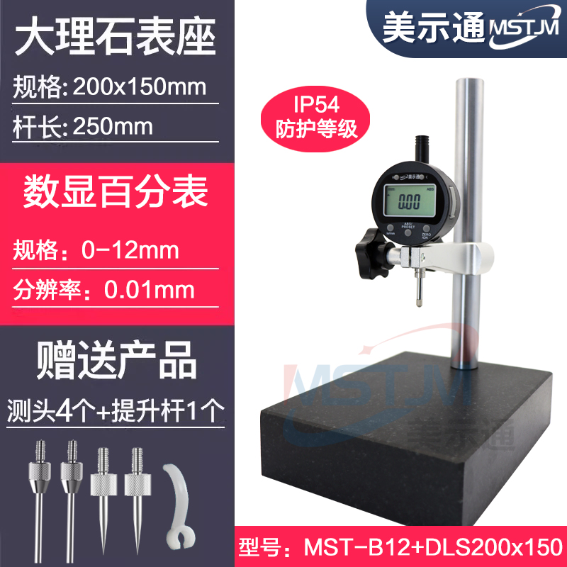 美示通数显百分表0-12.7mm+大理石200X150mm 送四个测针,1个提升杆