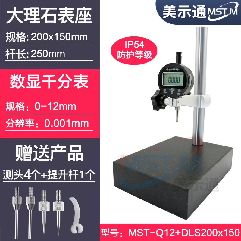 美示通数显千分表0-12.7mm+大理石200X150mm 送四个测针,1个提升杆