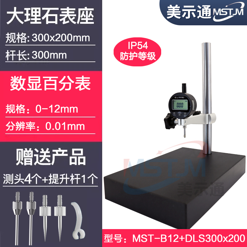美示通数显百分表0-12.7mm+大理石300X200mm 送四个测针,1个提升杆