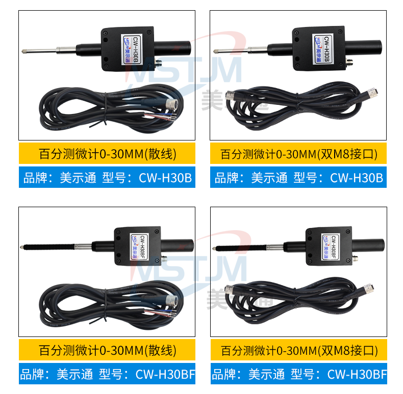 美示通485绝对值测微计主要功能: 1、高精度位移测量,绝对原点技术2、可与 PLC 、上位机软件、触摸屏等通讯,协议为Modbus RTU3、可软件设置站号地址和串口通讯参数等技术指标:1、接口形式:RS485接口2、通讯协议:MODBUS RTU3、工作电压范围:DC5V~24V4、从站可调范围:1-2475、波特率可调范围:9600-1152006、工作电流:<10mA7、数据更新速度:默认8ms(125次/S),最快可设4ms(250次/S)8、使用寿命:反复测量500万次9、检测系统:容栅测量系统,玻璃材料传感器引线定义: 棕(5V~24V) 蓝(A+) 白 (B-) 黑(GND)