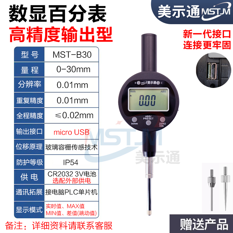特点:●超大数字显示●预置实际位置数值●跳动量检测(差值=最大值-最小值)●大容量3伏锂电池●自动/手动关机●玻璃容栅传感器●绝对和相对测量●任意位置公英制转换●高速自动寻找并保存最大值、最小值●Micro数据输出口●航空铝合金主体